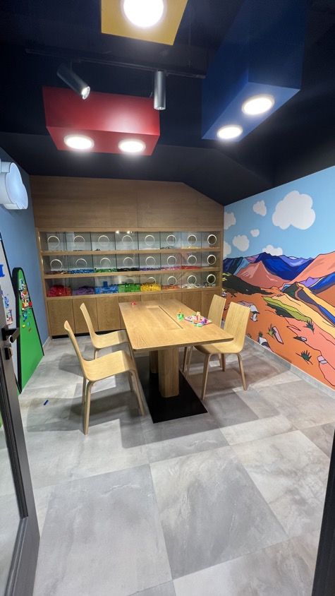 - Obrovský herní koutek: Skutečné centrum s velkými prolézačkami, LEGO zónou a místem na malování.