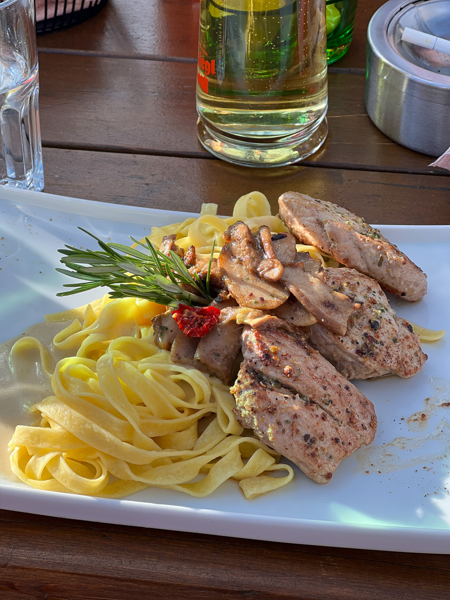 Ubytování bylo řešené velmi prakticky. Pokoje byly prostorné a útulné, s velkým balkonem a výhledem na okolní hory, což dodávalo pobytu typickou alpskou atmosféru. Stravování v hotelu fungovalo formou snídaní a večeří, kde byl vždy pestrý výběr jídel a zároveň možnost nechat si od kuchaře připravit něco navíc podle chuti. Příjemným doplňkem pobytu bylo wellness centrum s bazénem a saunami, které přišlo vhod hlavně po dni stráveném na svahu.