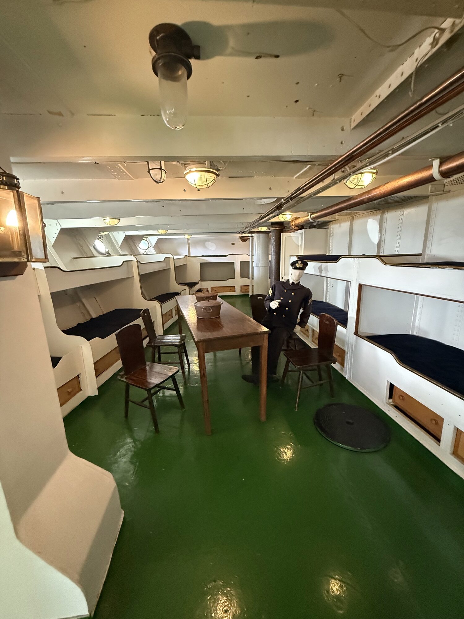 - Kajuty a jídelny: Uvidíte propastný rozdíl mezi luxusními kajutami důstojníků (vypadají jak z Titanicu) a strohým ubytováním obyčejných námořníků.